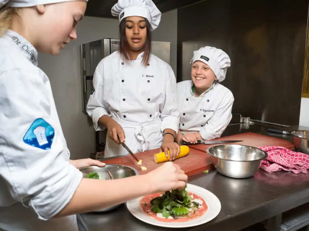 Mijn favoriete vakken op school zijn bakken, koken en gym. Tijdens bakken en koken leren we niet alleen recepten, maar ook hoe we moeten samenwerken en netjes werken in de keuken. Het leukste moment van de les is misschien wel, wanneer we mogen proeven wat we gemaakt hebben. Gym is ook leuk, omdat je lekker in beweging bent en ik sporten heel belangrijk vind. Elke dag is hier anders en dat maakt het juist zo’n leuke school.Â