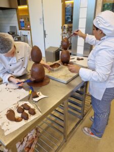 Met diverse technieken werden een paar chocolade eierschalen een prachtig kunstwerkje voor de paasdagen